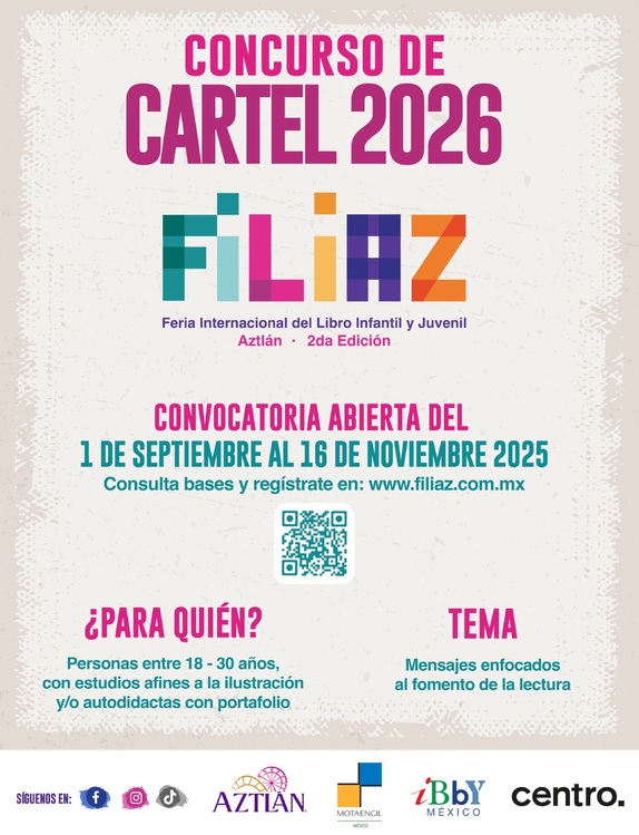 La Feria Internacional del Libro Infantil y Juvenil Aztlán (FILIAZ) anuncia la apertura de la convocatoria para el Concurso de Cartel FILIAZ 2026, dirigida a jóvenes de 18 a 30 años, estudiantes, profesionales y autodidactas con talento y experiencia en diseño, ilustración, comunicación visual y disciplinas afines.