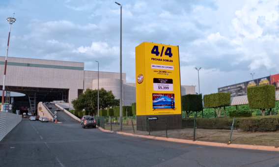 Se trata de 4 gigantescas pantallas de LED’S: dos en la Terminal 1, ubicadas justo a la llegada a esa terminal, en donde los autos se detienen a dejar y/o recoger pasajeros. Y las otras dos pantallas, en la Terminal 2, en el formato de columnas, colocadas también a la entrada de automóviles a ese aeropuerto.